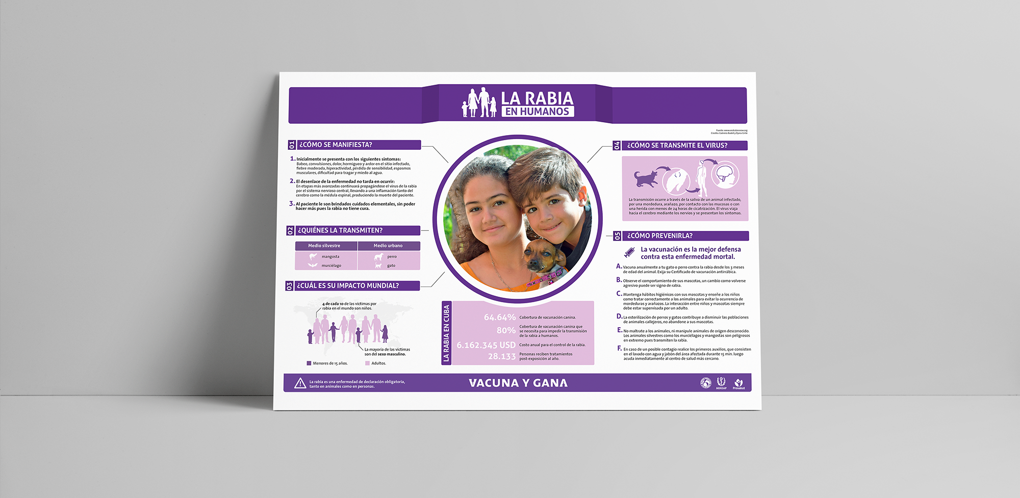 "Vacuna y Gana" (Vaccine and Win) is the Cuban nationwide campaign for pets' rabies vaccination. Its main objective is to raise awareness of the importance of rabies prevention and promote the responsible immunization of dogs and cats specifically.