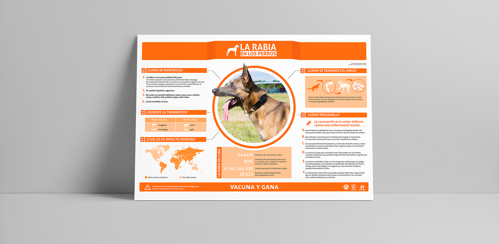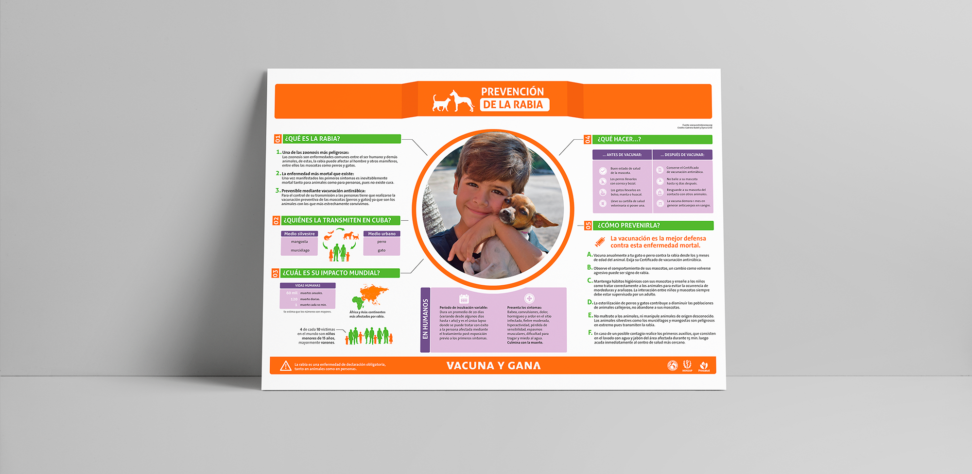 "Vacuna y Gana" (Vaccine and Win) is the Cuban nationwide campaign for pets' rabies vaccination. Its main objective is to raise awareness of the importance of rabies prevention and promote the responsible immunization of dogs and cats specifically.